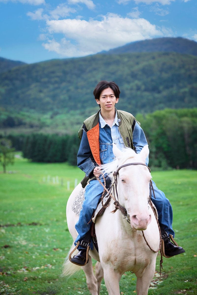 このたび解禁されたカット4点は、北海道と沖縄で撮影された。北の⼤地で撮影されたのは、北海道旭川市のヒーローである「⿓神リョウガ」との共演が実現した“Wリョウガ”のカット。自身のセンター曲「Bloody Night」の衣装を着たリョウガと⿓神リョウガによる、躍動感のあるポーズが印象的な1枚だ。また、星野リゾート トマムで撮影されたカットでは、リョウガが⼤⾃然の中でさっそうと⽩⾺に騎乗する姿が切り取られている。