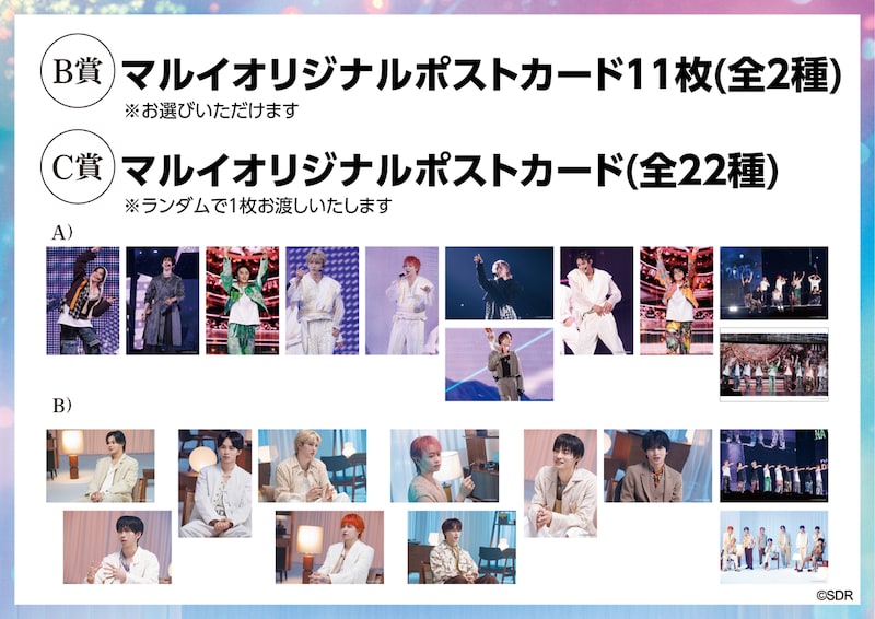 「超特急 The Movie RE:VE」は今年6月より東京、兵庫、愛知、埼玉の4都市の会場を回った超特急史上最大規模のアリーナツアー「BULLET TRAIN ARENA TOUR 2025 EVE」に密着した作品。入場者特典第1弾はメンバー9名の写真4点ずつをフィルムコマ風にあしらった全9種類ランダム配布のカードで、いずれもまだ世に出ていない初出しのカットばかりで構成されている。