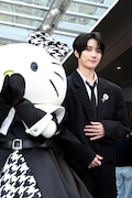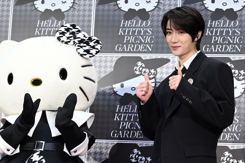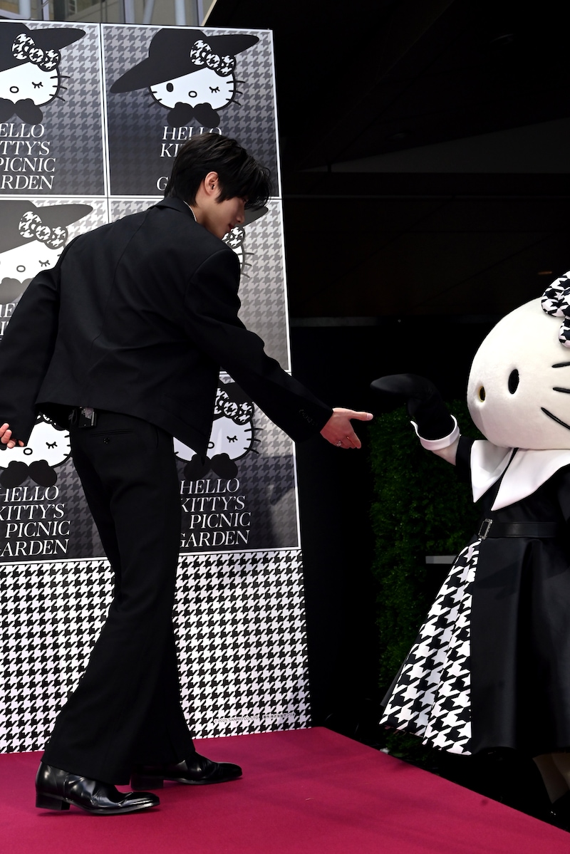 会見の途中に一時降壇したBEOMGYUは、再度の登場時はハローキティとともに再び壇上へ。中腰でしゃがみながらハローキティの前を歩くなど周囲を警戒するジェスチャーをし、まるでハローキティを護衛するSPのように前へ進み報道陣を和ませたのち、階段を上がったあとは手を差し伸べてハローキティを華麗にエスコート。その後BEOMGYUはハローキティと何度もハイタッチをしたり顔を見合わせたりと、会見中にハローキティと“なかよく”なっていた。