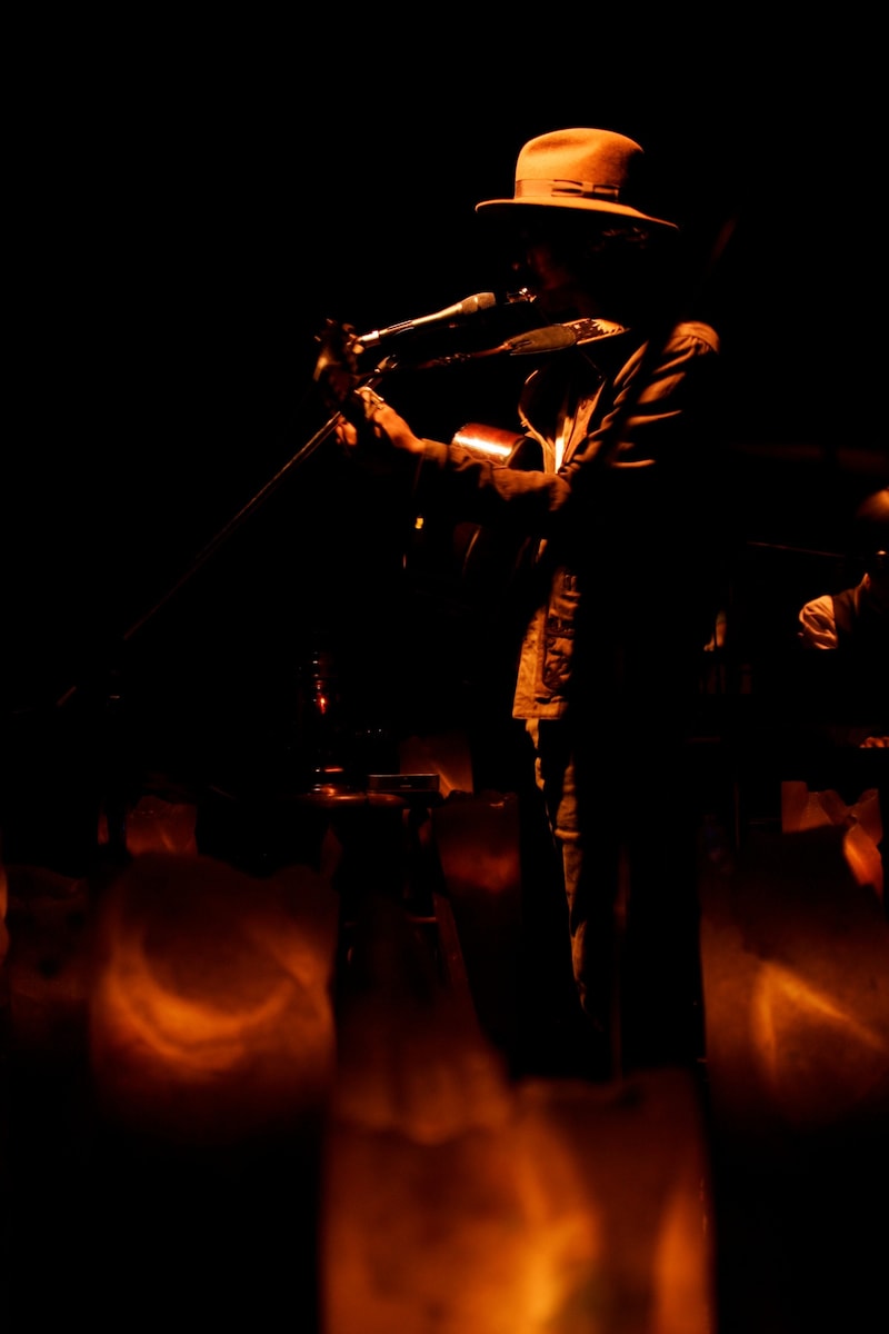 続いてのパートではバンドメンバーが一旦退場し、Caravanひとりの弾き語りが繰り広げられる。「手放すことも大事だなと思って作った曲を」という説明から切なげな口笛がオープニングを飾る「Saraba」や「On the road again」といった最新アルバム「The Sound on Ground」の2曲を丁寧に届けた。合間のMCでは10月下旬から始まる弾き語りツアーについて触れ、「ボブ・ディランのNEVER ENDING TOURみたいに続けていこうかな」と長期スパンで行っていく意志を明らかにした。その後、倉井を呼び戻し2人だけのセッションに突入。当初は別の曲を演奏する予定だったが、Caravanの「やりたい歌を見つけてしまった。予定を変えます! 外にいるような感じで」という言葉から「Camp」がスタート。キャンドルの温かな光や、倉井の鳴らす指笛などが自然の中にいるような雰囲気を作り出し、フロアはさながら野外フェスの雰囲気に。ゆったりとしたグルーヴに乗せてハンドクラップが響き、最後はCaravanとオーディエンスの大合唱がフロアにこだました。