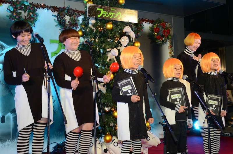 12月15日よりティム・バートン監督の最新映画「フランケンウィニー」が公開されることを記念し、東京・TOHOシネマズ 六本木ヒルズに同作をテーマにしたクリスマスツリーが登場。この点灯式イベント「ドンピカリガッシャン クリスマスツリー点灯式」が本日11月20日に行われた。