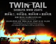 勝井祐二(Violin)、中村達也(Dr)、照井利幸(B)、映画監督の豊田利晃によるユニット・TWIN TAILが1月9、10日に東京・WWWにて2DAYSライブを開催。このライブで豊田の撮り下ろし短編映画「シンフォニー」が上映されることが明らかになった。