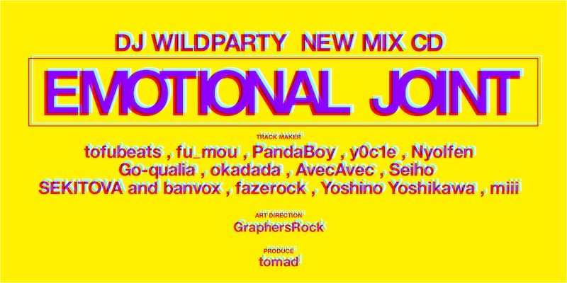 今回DJ WILDPARTYが制作する「Emotional Joint」は「エモ」をテーマに、ネットを中心に活動する国内トラックメイカーに声をかけ、新曲や未発表曲のみで構成するミックスCD。この中には10代でありながら既に海外で作品をリリースしているSEKITOVAとbanvoxの共作曲や