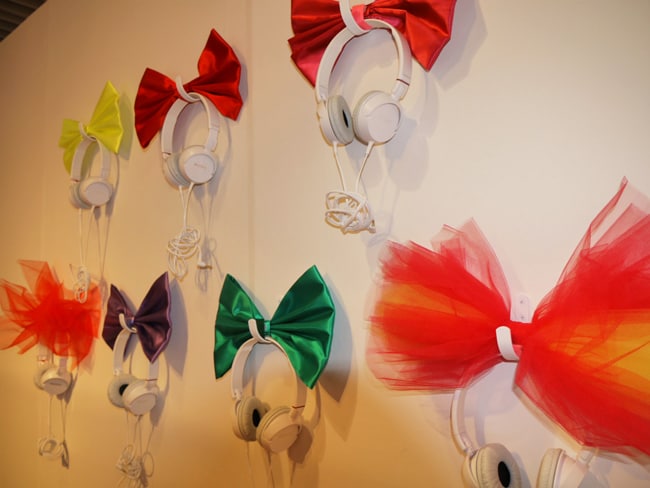会場に入ると、きゃりーのトレードマークとも言える大きなリボンの付いた音声ガイダンスを渡され、本人の声でストーリーや衣装解説を楽しみながら散策できる。きゃりーぱみゅぱみゅの世界観で彩られた場内には、「PONPONPON」「つけまつける」「CANDY CANDY」「ふりそでーしょん」などのビデオクリップでおなじみの衣装はもちろん、日本武道館公演で着用したフェアリー風のドレスや、「NHK紅白歌合戦」で話題となった「ファッションモンスター」の大型衣装、さらにライブやビデオクリップで実際に使われた美術セットが所狭しと展示されている。