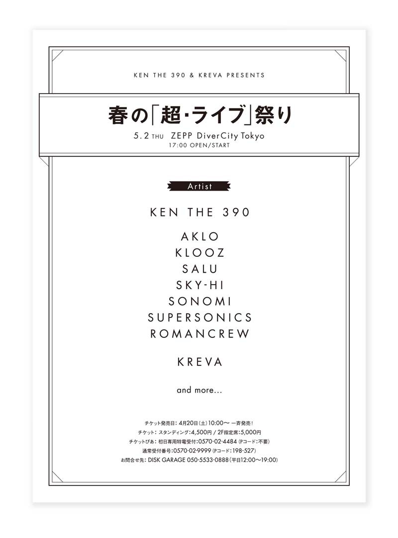 KEN THE 390 & KREVA Presents 春の「超・ライブ」祭り
