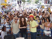 8月13日にシングル「君のすべてに」をリリースし、この曲の着うたが早くも累計60万ダウンロードを突破したSpontania feat.JUJU。本日のライブ会場では朝から「君のすべてに」ジャケットのひまわりをモチーフにしたうちわが配布され、ステージにひまわりのアーチが設置されるなど、109前は夏らしくひまわり一色となった。