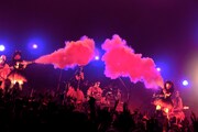 彼女たちはそのまま生バンドならではの高速重低音仕様の「BABYMETAL DEATH」「いいね!」「君とアニメが見たい ~Answer for Animation With You」を連射。フロアのボルテージは一気に最高潮に達し、あちこちでモッシュが繰り広げられる。さらに「いいね!」ではSU-METALの「お台場!」コールにオーディエンスが「お台場!」と絶叫で返す。