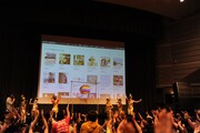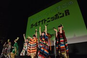 そしてiTunes Storeのチャート発表では1位を穫ったときのため、ステージ上にくす玉がスタンバイされた。司会を担当したチームしゃちほこの“店長”こと長谷川マネージャーも結果を聞いておらず緊張の面持ち。合図とともにスクリーンにiTunes Storeの画面を映し出し、チャートを確認すると、チームしゃちほこ「首都移転計画」はDAFT PUNKの最新作「Random Access Memories」に阻まれ惜しくも2位という結果だった。「DAFT PUNK、強えなあ!」と悔しがる店長と、「……誰?」とキョトンとした顔を浮かべるメンバーたち。しかしこれは総合チャートの順位で、J-POPのチャートに移動すると「首都移転計画」は見事1位に。「ジャパンで1位!!」と観客とともに喜びを分かち合い、晴れてくす玉を割ることができた。