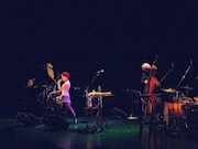 「Madame Crooner」の1曲目を飾る「Polka dots and moonbeams」から始まったコンサートは、コシ曰く“小さなダンス”を交えた見どころ満載の内容に。軽やかにステージに現れた彼女は、イスに足をかけてウィスパーボイスを聴かせたかと思えば、グロッケンやアコーディオンを操りながらチャーミングな歌声をホールいっぱいに響かせる。また「You do something to me」や「Un jour mon prince viendra」は、フェビアンの伴奏だけのシンプルなスタイルで披露した。