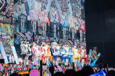 このライブでは圧巻のステージセットも話題を呼んだ。巨大なサイリウム15本(歴代メンバーの数と同じ)がステージに突き刺さるように並び、背景にはこれまでの衣装およそ400着がずらりと飾られる。さらに秋葉原ディアステージの店舗から持ってきた(!)シャッターも設置され、広いステージ上にはグループが築いてきた歴史が所狭しと詰め込まれていた。これほどまでにエモーショナルで、意味と文脈を持ったステージセットには通常なかなかお目にかかれない。