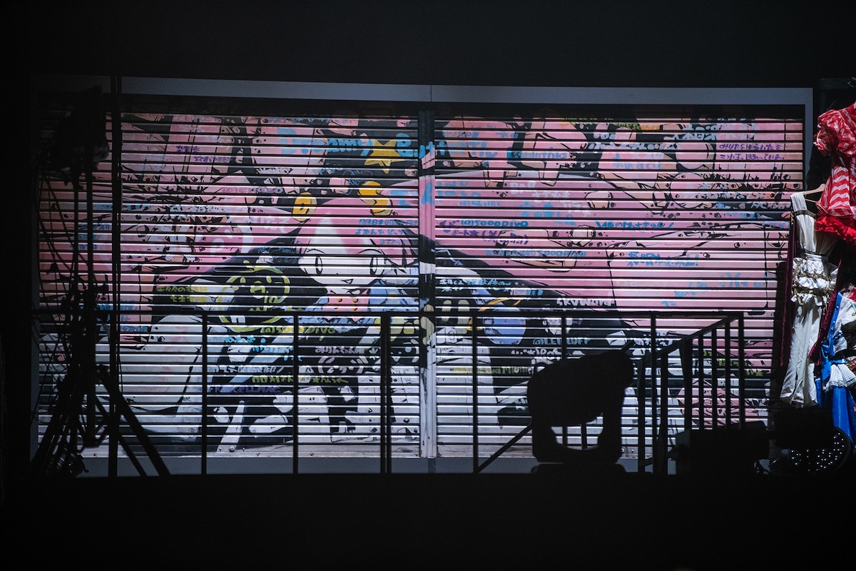 「事務所にある衣装をすべて持ち込んで、もふくちゃんが当日朝の4時頃からかな? 現場でヘルメット被って衣装を並べる順番から見え方まで全部指示してました。『水野さんも手が空いてるなら衣装持ってきて!』みたいな(笑)。あとシャッターはもふくちゃんの瞬発力ですよね。『ディアステの象徴だから絶対持っていく』『ステージに置いたらカッコいい』とか言って年末に店から外して持ってきた。でも実際運ぶと想像以上にデカくて重くて(笑)。どこに飾るのかも最後まで決まらなくて、あそこに置こうって決まったのはほぼ当日だったんじゃないかな。外したはいいけどそこまで深く考えてなかった。ライブ終わっても結局もう元には戻せないし、ホントに行き当たりばったりでしたよね(笑)」