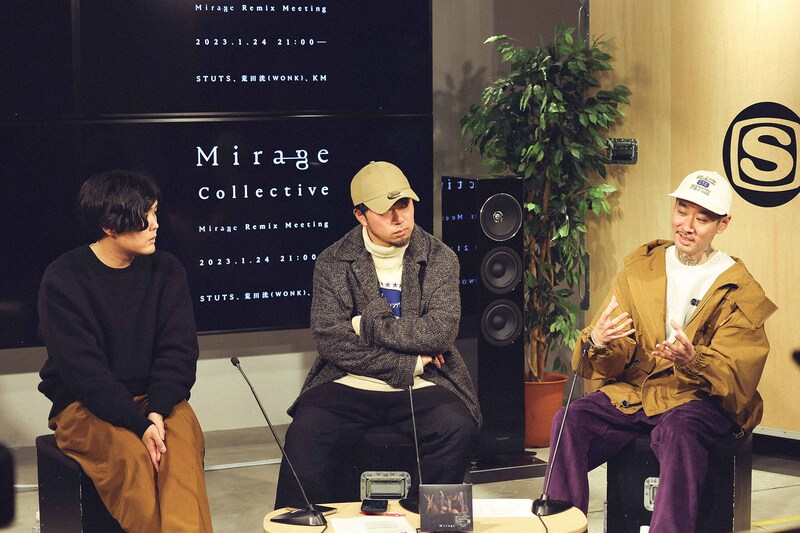 そんなMirage Collectiveの番組「Mirage Remix Meeting - supported by Technics」が1月24日にYouTubeで生配信された。「Mirage Remix Meeting」は「Mirage Op.1」のリミックスを広く募集し、Mirage CollectiveのメンバーであるSTUTS、荒田洸(WONK)に加え、トラックメーカー / プロデューサーのKM、そして司会を務めるライター / DJの高橋圭太 aka shakkeが届いた音源についてトークを繰り広げる番組。STUTS、荒田、KMが選んだリミックス作品の制作者に、番組をスポンサードするTechnicsのワイヤレスイヤフォン「EAH-AZ60」がプレゼントされた。また当日のスタジオには、Technicsの再生機器からなる高級オーディオシステムが設置され、Technicsの“グランドクラス”シリーズのターンテーブル「SL-1200G」やスピーカー、アンプなど計100万円を超える音響機器も番組の見どころとなった。