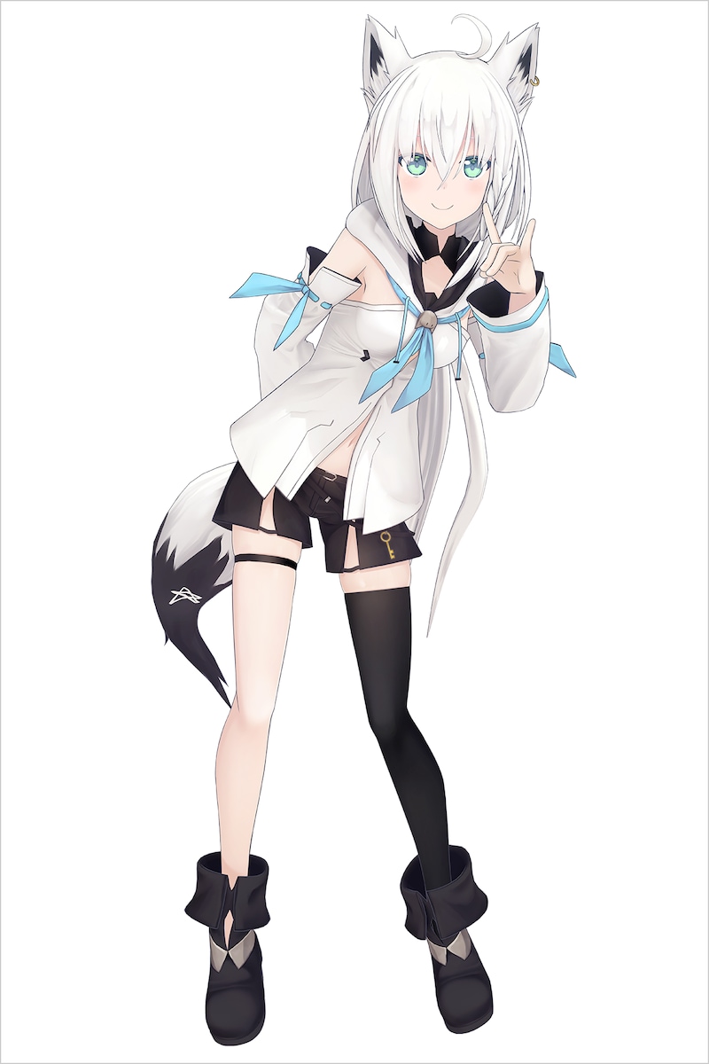ホロライブ1期生、ホロライブゲーマーズ。ゲームへの造詣が深いオタクで、白髪に獣の耳“ケモミミ”を生やした狐。VTuber文化がマイナーだった頃から、ホロライブを牽引してきたメンバーの1人で、甘く華のある歌声は唯一無二の存在感を放っている。