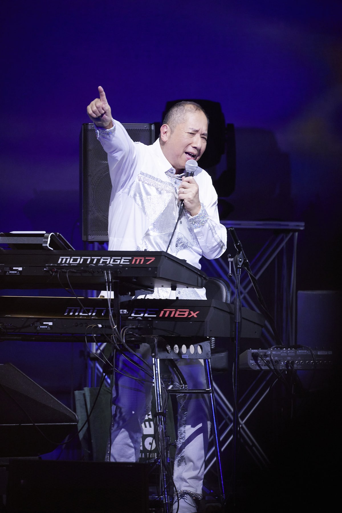 向谷 あれはヤマハのKX5というショルダータイプのキーボードに、ワイヤレスMIDIを付けていて。このワイヤレスMIDIはカシオペア時代にも挑戦したことがあるんですけど、あまり遠くに行くと、音が途切れちゃってたんですよね。それから2、30年経ってもう一度チャレンジしてみたら、無線機材の進化のおかげなのかわかりませんが、遠くまで動いても途切れずにちゃんと使えたんですよ。「これなら客席までバーっと出ていって演奏できるじゃん」と思ってやってみたら、これが面白くて面白くて。有線だったらできないような、櫻井さんとクロスする動きとかもやれたしね。