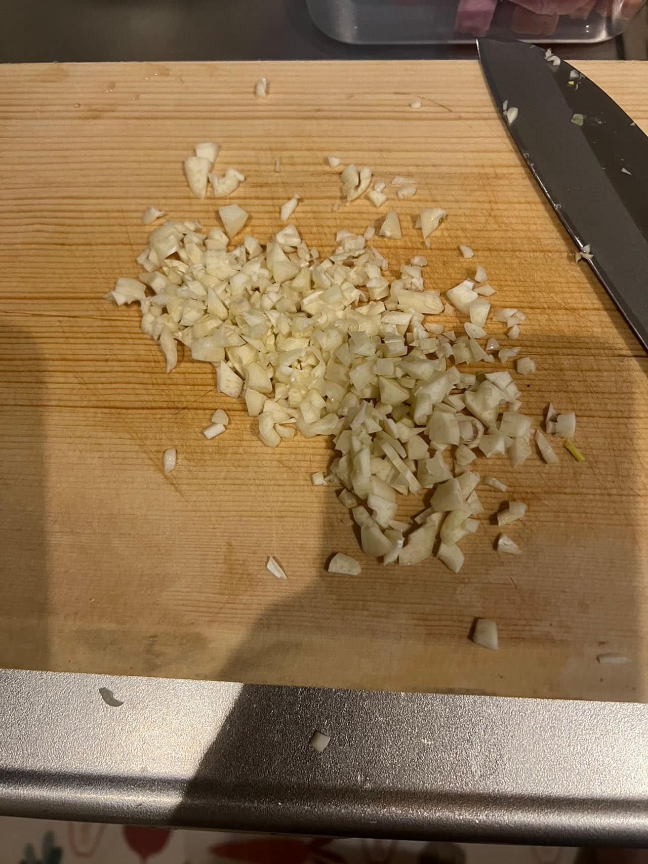- にんにくをみじん切りにする。