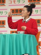 吉野家では小盛の牛丼とサラダを組み合わせた女性向けの新商品「コモサラセット」を11月1日から発売。小盛はカロリー控えめで、サラダは生野菜サラダ、ごぼうサラダ、ポテトサラダの3種類から選ぶことができる。これに福田は「女性はやはり野菜が食べたいですからね」と納得。「サラダは3種類もあるんですか。全部食べたいです」と、さっそく興味津々の様子だった。