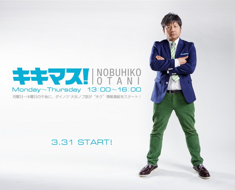 大谷は現在ニッポン放送で「ダイノジ大谷ノブ彦のオールナイトニッポン」と、プロ野球のオフシーズン限定の「Good Job ニッポン」を兼任中。今春からは毎週月曜から木曜まで、13時~16時の3時間ワイド番組を担当することとなった。