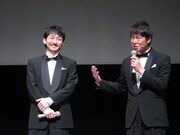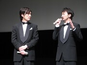 波岡は、「プレッシャーを感じましたが、それ以上に嬉しかった」とこのオファーを喜ぶも、「隣にいつも監督がいるので、全然違うって言われたらどうしようと心配で。でも漫才の練習とかするうちに徐々に馴染んで、優しくしていただきました」とコメント。高山は「役者根性がすごくて、僕のクセとか動きとか見てるんです」と感心しつつ、「20代の僕のほうが男前やったけど」と会場を笑わせた。