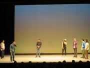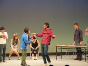 久住は放課後の教室という設定で田中&ヒロシと共演。気持ち悪い同級生役の2人に対して、「私の靴とカバンが盗まれたんだけど」という久住のセリフでその後の流れがバチッと決まる展開に。エチュードが大好きという槙尾は、高橋プラス小峠サーカス団の4人というメンバーにも関わらず、その演技力で病院の待合室という設定から見事な医療ドラマに転化。最後のう大は、全員参加のオレオレ詐欺事務所という難解な設定で、久住と槙尾の即興力をもってしてもまとまらなかった。