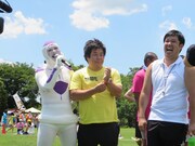 ドッジボールは各チーム12人ずつ参加の2対戦を実施。ハイスピードな展開に加え、さまざまなキャラクターも入り混じる試合に、MC陣は「レゲエダンサー(チョコレートプラネット松尾)が素早くボールをかわします!」「ゆとりが生んだモンスター(