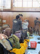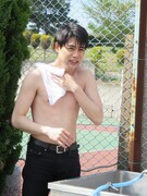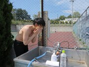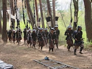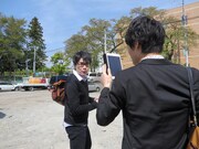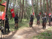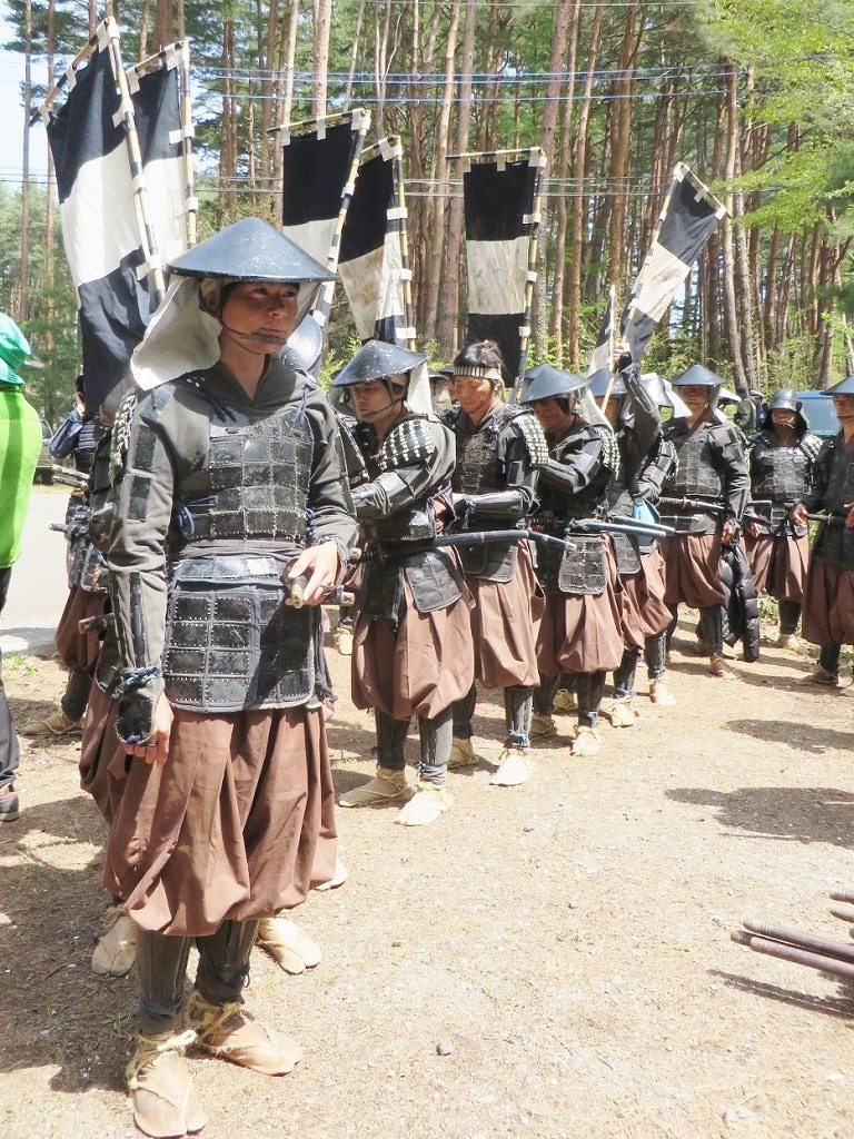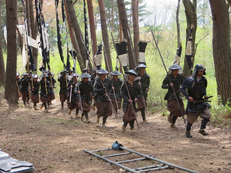 ロケでは同日にいくつかのシーンが撮影されたため、吉村を含むエキストラたちは、その都度背中に付けた旗などの装具を変えたり、並び位置を変更。吉村は行列の真ん中にいることもあれば、先頭に近い場所にいることも。いずれの場面でも、吉村はとにかく走る演技を懸命に行っていた。
