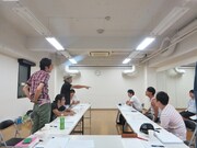新作の舞台は病院。田中は「とりあえず最後まで書いたという状態。ここから変わると思うけど、だいたいこういう話ということで」と前置きし、全員で読みあわせを始めた。2011年12月の初演からはや2年半以上が経ち、読み合せもすっかり慣れた雰囲気。これまでのストーリーを思い出すような展開や、それぞれのキャラらしいセリフなどが出るたび、何度も笑いが起こっていた。