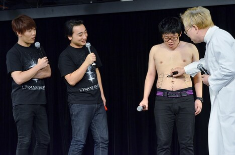 このイベントは「ブサイク芸人改造プロジェクト」と銘打たれて実施されたもの。「フランケンシュタイン」の作品内容に伴い、美容整形で知られる高須クリニックの高須克弥院長が3人の顔面や肉体改造のシミュレーションを行った。