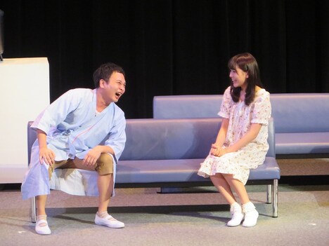 ところが野田が胡桃と2人きりになるシーンで完全にセリフが頭から消え、急遽「トイレにいってくる」と舞台から消える大ハプニングが発生。いきなり舞台上で1人きりになった胡桃は「早く野田さん帰って来ないかな……」とうまく話をつなぐと、慌てて田中も登場し「最終公演でこれまでなかったことが起きてる。こんなシーンなかった」と目が泳いでしまった。