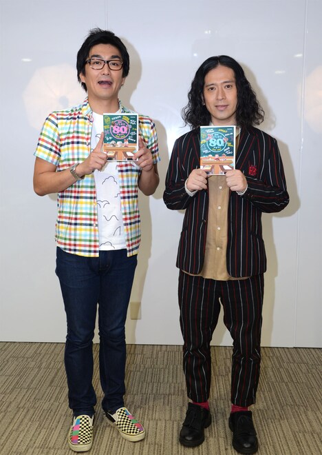 ともに1980年生まれの徳井と又吉。対談時には学校机を並べ、当時のものを再現した給食を食べたり、リコーダーを吹いてみたりしながら、子供の頃に見ていたテレビ番組や子供時代の自分について、ざっくばらんに語り合った。