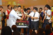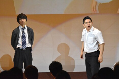 Aブロックから決勝に勝ち進んだのはトチギフ。転校生役の荒井が転校初日にも関わらず、担任教師役の長屋から繰り出される「学級委員としてクラス全員のプリントを集める」「転校していくクラスメイトにお別れの言葉を贈る」「文化祭の出し物でやる劇の主役」などのムチャ振りに、さまざまなバリエーションの「初日だぜ」で返答していくコントで、観客にインパクトを残した。