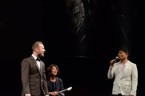 WRETHOVの力強いパフォーマンスを間近で堪能した宮迫、米倉、溝端の3人。宮迫は「映画のスケール感をさらにグレードアップさせるようなすごい歌声だった。鳥肌が立ちました」とその感動を興奮気味に語る。司会から「ぜひ日本語版を歌って」と提案を受けると、「僕が!? 日本語で歌うんですよね? それはなかなかの失笑じゃないですか? 機会がありましたら(笑)」と苦笑いした。