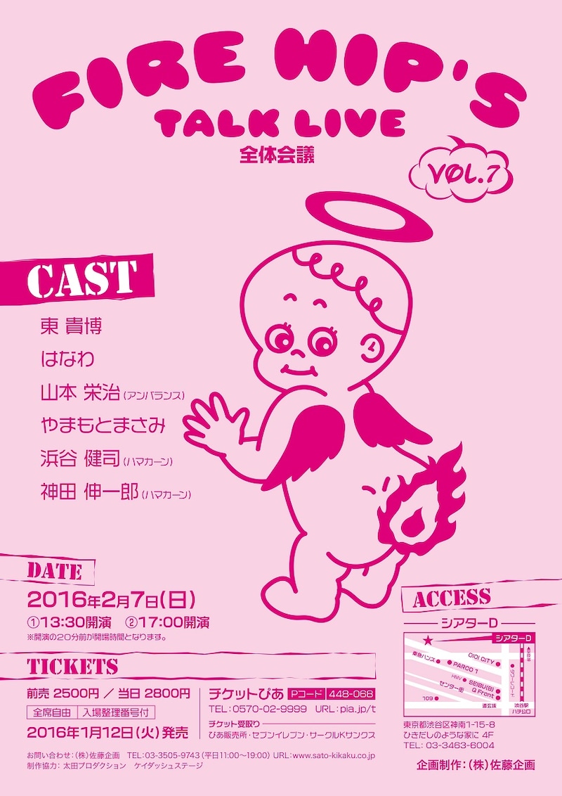 「全体会議」は東が座長を務める劇団・FIRE HIP'S が毎年開催している恒例イベント。6人が近況報告や「FIRE HIP'S」に関する裏話など、さまざまなトークを展開する。チケットは本日1月12日よりチケットぴあで販売中。