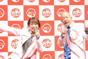 大使の証であるたすきと学ランを身につけた小峠は「モリモリ大使? ……ダサいですね!」と不満そう。鈴木の部下という設定にも顔をひきつらせつつ、大使就任後の初仕事として“上司”の鈴木、そしてチアリーダーたちとのダンスで会場を盛り上げた。