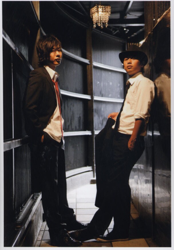 クラブをセットに、黒のスーツで登場した2人。写真は、吉本男前ランキングで1位と4位をとっているだけあって、相当男前に仕上がっているとのこと。記事では、彼らのDVDや書籍、8月29日に東京公演が控えている「LISENCE vol.ZEPP ENJOY!!~grow up 2009~」などについて語られている。