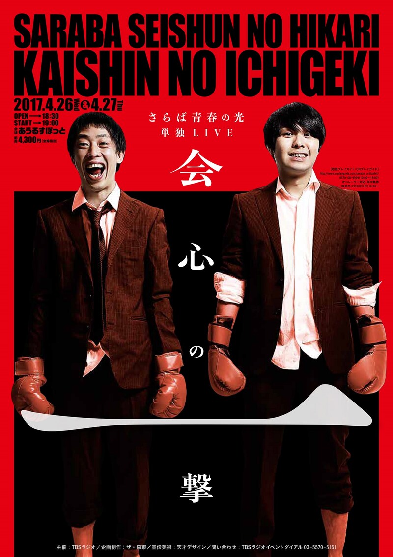 今までも意欲的にライブを開いてきたさらば青春の光だが、森田は今回の単独について「間違いなく今までで一番気合いの入った単独ライブです! ゴリッゴリに笑かしますので是非お越しください!」といつにも増して強気なコメント。東口も「単独ライブ新装一発目! 会心の一撃を喰らいにお越しいただけたら!」と呼びかけている。気合十分な2人が届けるネタの数々を堪能しよう。