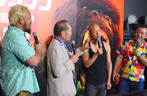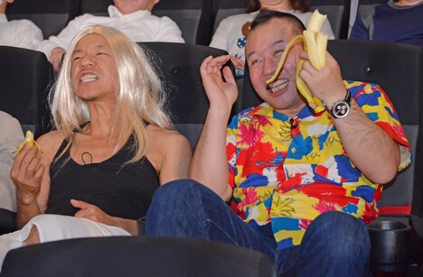 その後、バイきんぐら4人は2組のカップルという設定で「キングコング:髑髏島の巨神」のワンシーンを4DXで鑑賞することに。座席の揺れ、水の噴射、フラッシュなどを駆使した臨場感抜群の4DXに小峠は「すごかったですね! スクリーンの向こう側とこっち側が一体になった感じがしました!」と興奮気味に語っていた。