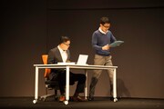 昨日の開演前、ゲネプロを終えた2人に話を聞くと、じろうは通し稽古も回を重ねていることから「これまでで一番いい状態で本番を迎えられそう」と手応えを感じている様子。ネタに関しては、ネタ出しの段階で「本多(劇場)じゃないほうがいいな」とボツにした案も多く、苦労したと明かす。長谷川によれば1本目の会話を中心としたネタの見せ方が特に悩んだところ。「稽古場でも、じろうと『なんか違うなー』って。登場人物の年齢を変えてみたり、迷走しました」と語るように試行錯誤して今の形に辿りついた。映像を使いながら多彩なコントが次々繰り出される中には、いつにもまして異常性の高いネタも。じろうは「春だからじゃないですか?」と笑った。