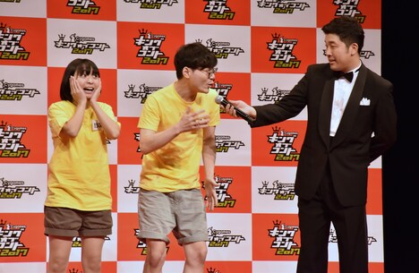会見の最後は、大会の公式アンバサダーを務めることになったモデルのみちょぱこと池田美優も登場。決勝進出者を見渡して「あんまり知ってる人がいない(笑)」とコメントしつつ、「でもここに残ってるってことは面白いってことですよね。楽しみ」と期待する。また彼女が「にゃんこスターさんがなんか怖い」とコメントすると、スーパー3助は「ゲレロンステージ(K-PRO主催のバトルライブ)で2位だったにゃんこスターですよ! 知らないんですか! ゲレロンステージ!」と興奮気味に反応し、周囲の芸人たちを笑わせていた。