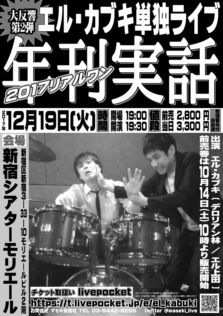 - エル・カブキ単独ライブ「年刊実話2017~リアルワン~」開催決定 - マセキ芸能社 MASEKI GEINOSHA Official Site
