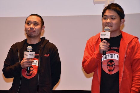 「芸人にとってドキュメンタルとは?」との質問には「自分のお笑いレベルを計れる場所」(くっきー)、「『面白い』は、なんなんやろ?と考えた」(大悟)、「タレントのバロメーターの『面白い』だけが試される一番怖い場所」(ノブ)と答える3人。イベント最後のまとめとして、くっきーは「田舎から日本一になろうと思って出てきた。俺が一番やと思って戦ってる。そんな姿を観てやってください。ヨロシクです」とまくしたて、大悟は「芸人が身体だけで笑かして、笑うのを我慢する。実はシンプル。お笑い好きは観てください」、ノブは「ずっと笑えるシーンになってる。くっきーさんが今回は神がかってる。芸人もカッコいいところがあるんだなと思って観てください」と話し、それぞれ発言の最後にポーズを取っていた。