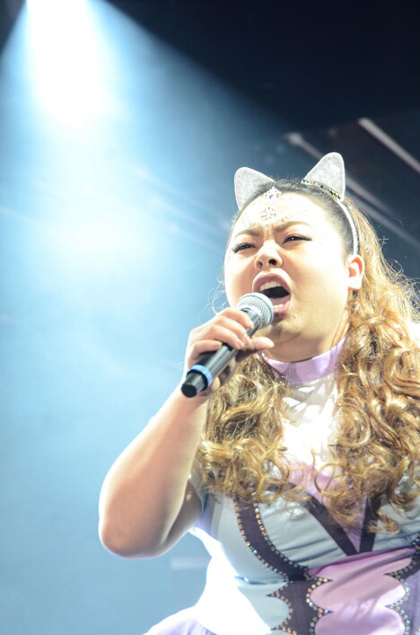ステージ中央の扉が開くと、アリアナ風の衣装を着用し、後ろ向きで仁王立ちする直美の姿が。口パクのパフォーマンスで観客を煽りつつ、志村けんのキャラクター・変なおじさんのような動きで笑いを誘い、サビの部分では力強い生歌を披露して魅了した。「ENGLISH JUKE BOX」を使用した感想を問われ「今まではなんとなく英語をしゃべっていたので自信がなかったけど、リアルな英語を学べるのですごく自信がつきます」とコメント。「やっていくうちに意味がわかったり、単語が聞き取れたり、どんどん楽しくなる」と同製品の魅力を紹介した。