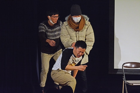 デート中に遭遇した友人をテーマにしたコントでは巧みな心理描写や意外な展開で観客を引き込む一方、相撲が題材のコントでは馬鹿馬鹿しさ全開のストーリーで会場の爆笑を誘った卯月。退学にまつわる騒動を描いたラストのコントでは、酒井にムチャぶりをした林田と木場が堪えきれずに笑ってしまう自由奔放さも見せつけた。