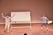 なお対抗戦の審査中には、両校から生徒3組ずつ登場し、エキシビションとして1分ネタを披露。対抗戦の番外編とも言える個性的なネタの数々が会場中をなごませた。