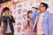 1等前後賞合わせて3億円の「バレンタインジャンボ宝くじ」をPRするこのイベントで、とろサーモンは「ジャンボ宝くじ」CMキャラクターの島崎とのバレンタインデート権を懸け、告白対決を展開。まずは村田が、実況やナレーションでおなじみ低音ボイスを駆使して「うまい焼き鳥があるぞ。一緒に行きませんかー!」と島崎へ訴える。対する久保田は“褒めラップ”を披露することに。対戦相手の村田が渋々繰り出すボイスパーカッションに乗って、「遥香、向こうに行きたい」「君よ我にチョコをくれ」「バレンタインジャンボ、俺は暖房、暖を取りたい、寒い今日は温めて」といったこのイベントならではの歌詞を連ねた。