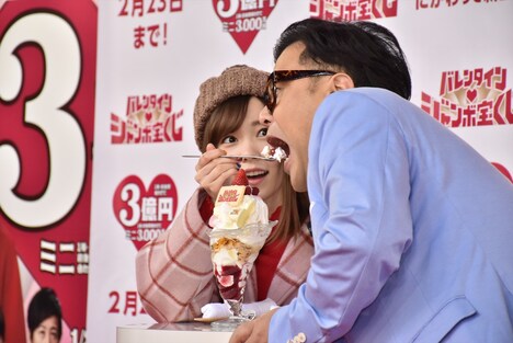 本日2月8日、東京・ラピロス六本木にて行われた「バレンタインジャンボ宝くじ スウィートチャレンジ PRイベント」に、
