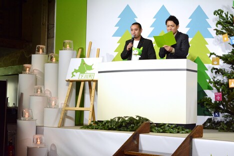 会見ではまず、千鳥ノブが「アロマを焚いてる会見場……クセがすごい!」と幻想的なセットをイジって笑いに。また下川町長・谷一之氏や、吉本興業の代表取締役社長・大崎洋氏の厳かな挨拶が続いたあと、その感想を聞かれた大悟は「本当にそうだなあって感じです……」と返し、ノブから「うしー(薄い)なー。『そうだなあ』はコメント史上一番うしーぞ」とツッコまれた。