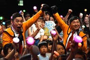 また1587体の展示という情報を聞いた際、太田が「100人乗っても大丈夫!」と反射的に叫ぶと、田中は「イナバ物置のCMですね」とフォローする。ほかにも大人向けの発言を続け、客席の子供たちを黙らせた太田は「声が吸い込まれていく。デビュー当時の営業を思い出します」と苦笑。それでもなお「ライブステージの最後にはガチャピンとムックが来ます」とボケてみせた。その横で田中はウルトラセブンの具体的なエピソードを語り、ウルトラシリーズへの愛を伝える。やがて客席エリアに降り立った2人は、「夏はウルフェスー!」と家族連れと声を揃えてイベントの開幕を告げた。
