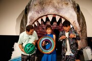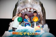 ハラハラドキドキするシーンが満載の「MEG ザ・モンスター」にちなみ、本日のイベントには随所に“ビビりポイント”が用意された。挨拶の冒頭で会場に叫び声が鳴り響いたり、ゲストに渡された風船がフォトセッション中に破裂したりするうちに、FUJIWARAと鈴木は何に対しても疑心暗鬼に。藤本にいたっては、遅れて会場にやってきたマスコミにも警戒の目を向けていた。