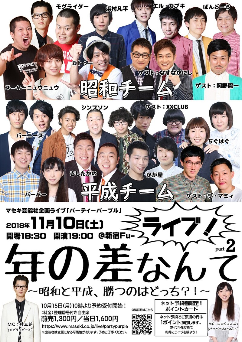 来月11月10日(土)、マセキ芸能社主催の「ライブ!年の差なんて2 ~昭和と平成、勝つのはどっち?!~」が東京・新宿Fu-で行われる。