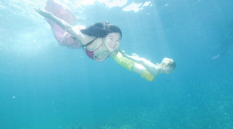 ガンバレルーヤは人魚になりきってジンベエザメとの2ショットを狙うことに。彼女たちはまず“マーメイドスーツ”に慣れるため、プールで泳ぎを練習。一方で、水中でドリアンを食べるという過酷な指令にもチャレンジする。体を張り続けたガンバレルーヤはインパクト抜群の写真を撮れるのか。